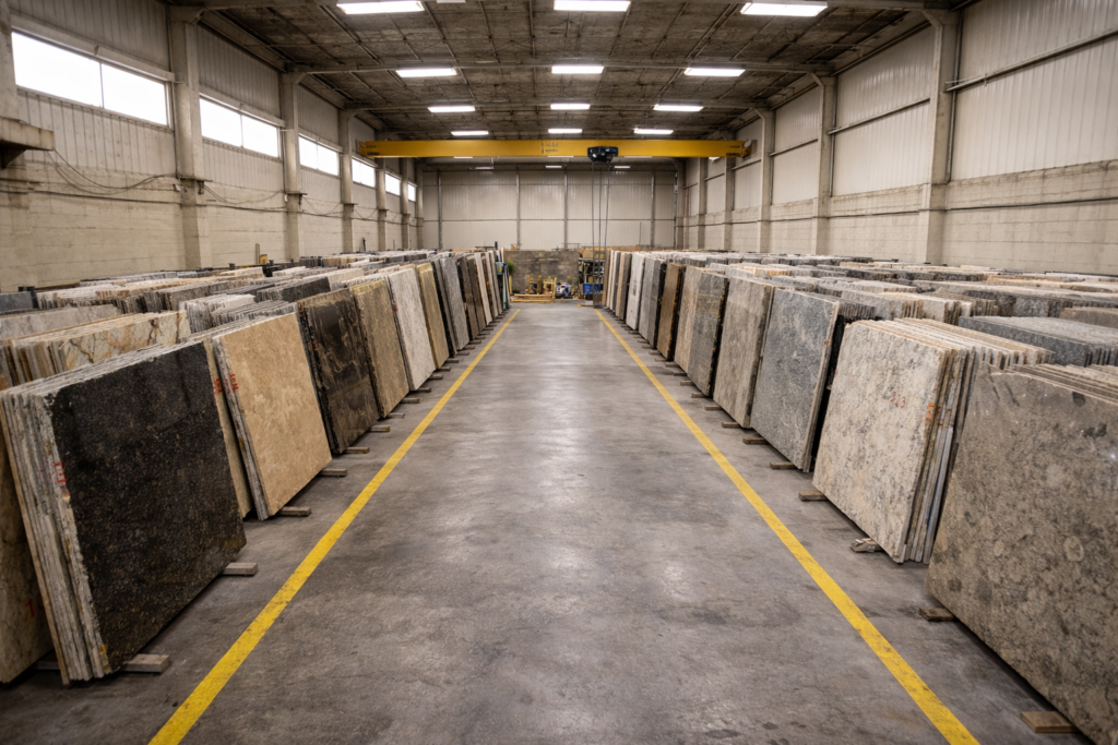 Possuimos um amplo catálogo de pedras em estoque e pronta entrega, onde o cliente pode vir á empresa adentrar ao estoque e escoolher aquela que mais o agrada, como veios e cores únicas.